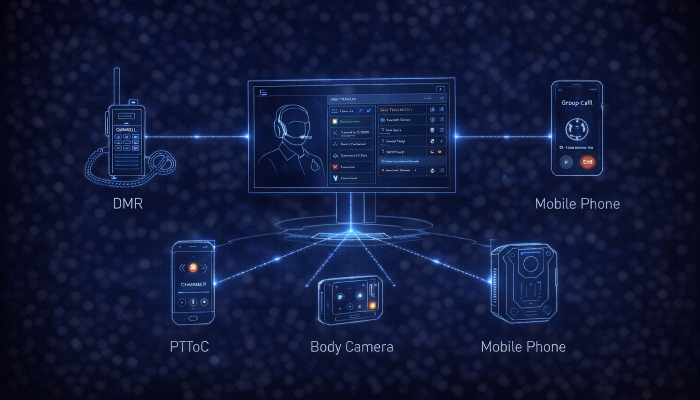 K One is an integrated command platform that connects DMR, telephony, and video systems, enabling unified communication and supporting multi-agency coordination in emergency response and large-scale operations.