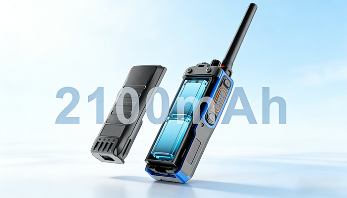 The standard 2100mAh battery provides 16–19 hours of operation under the 5-5-90 duty cycle. Its fully encapsulated circuit design protects against high temperature and humidity damage.