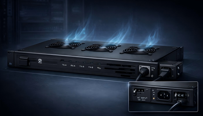 Designed in a space-saving 1U form factor, KR600 integrates three cooling fans and a modular structure to ensure efficient heat dissipation and stable operation. It supports both AC and DC power supply, with automatic switching, and is capable of continuous 100% duty cycle operation for critical missions.