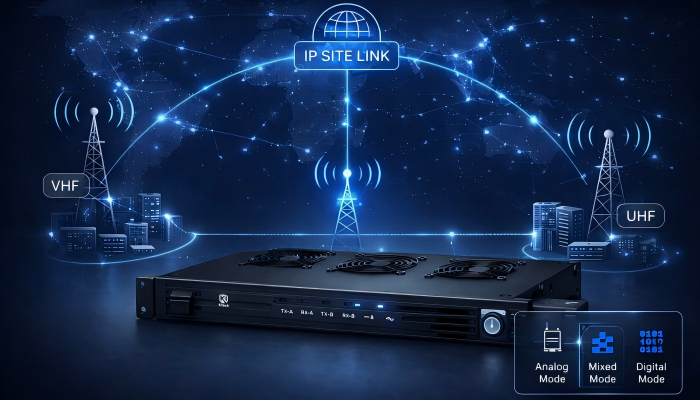 Through IP site link, KR600 enables interconnection across different modes and frequency bands, including UHF and VHF. It supports both simple and complex network topologies, from single-site setups to large-scale multi-site deployments.